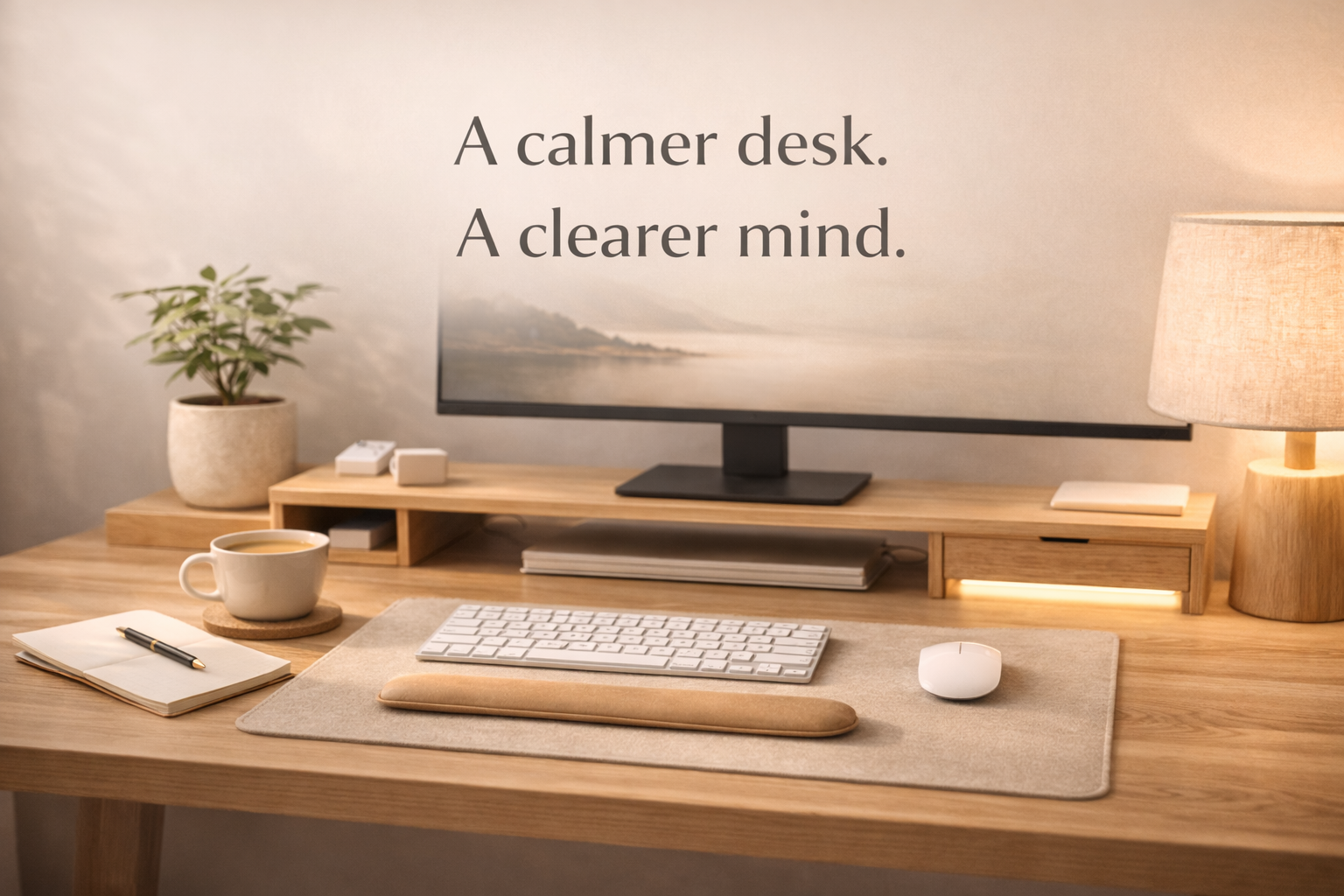 CalmDesk Studio curates minimal desk essentials that help you work with clarity and intention. We believe a quiet workspace creates deeper focus and better daily routines.