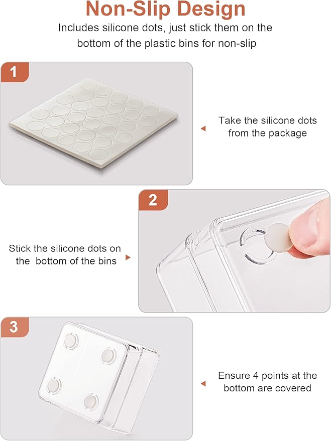 - Durable and Non-Slip Material - The clear drawer organizers made by unbreakable plastic, ensure the long life of use. Silicone non-slip pads at the bottom of the bin prevent the box from moving freely when dragging the drawer.