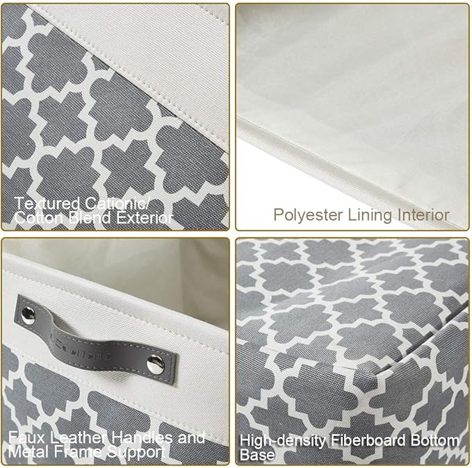 - Premium Bin Material: These storage bins are made with extra thick EVA fabric and are reinforced with a 2.5mm MDF fiberboard bottom, upper metal frame, and faux leather handles to withhold the daily use of bins for years to come.