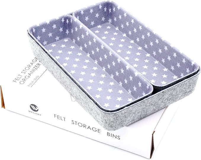 - Material: recycled felt with comfortable touch feeling, soft to prevent scratching, flexible for space saved up on desk, kitchen,bathroom or anywhere you desire with these stylish storage and organizer bins.
