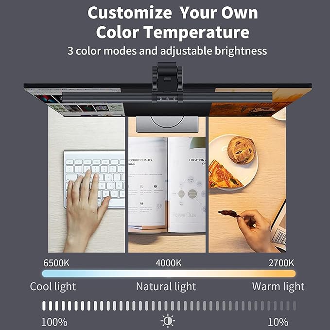 - 【Space Saving Design】Innovative counterweight design makes it easy and stable to fix the monitor light bar on the top of your computer. Unlike traditional task lamp, it does not take up space on your desk. Small size for easy storage and portability.