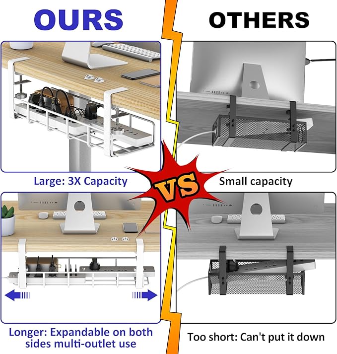 - TIDY & CLEAN DESK SPACE : REFLYING Wire management under desk makes your working space more tidy, no more messy wires and power strip, this desk cable tray is quiet different from old under desk cable organizer, more helpful, useful and more long-lasting