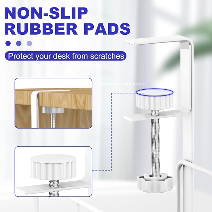 - SILICONE DESIGH & ADVANTAGES : Soft rubber pads on adjustable and removable clamps protect your desk or table from scratches. No Dust Accumulation, Anti-overheating, Flexible cable adjustment, Extra large capacity