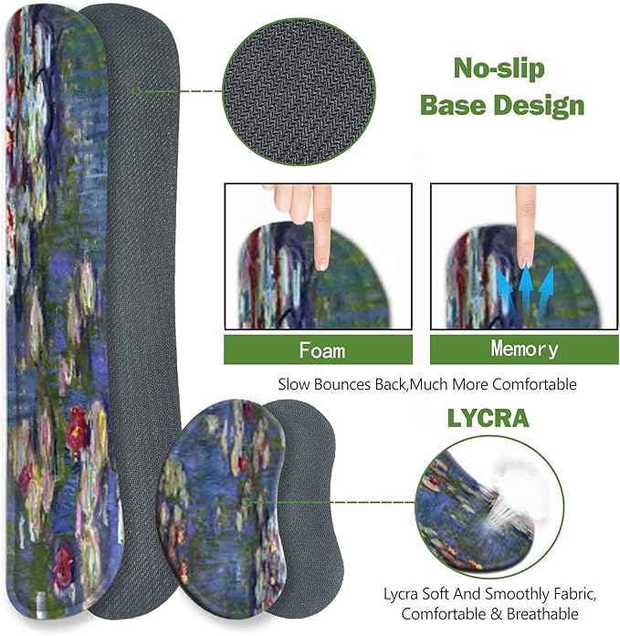 ToLuLu Extended Gaming Mouse Pad, Memory Foam Ergonomic Keyboard Mouse Wrist Rest Support Set, Large Desk Mat with Stitched Edges, Non-Slip Base Mousepad for Home Office Game, Monet Water Lilies