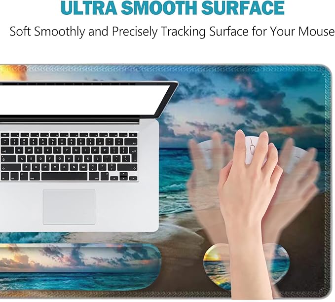 - 【4 in 1 Mouse Pad Set】:Ergonomic mouse pad includes desk pad (35x15.5inch), keyboard wrist rest(17.3x3.3inch), mouse wrist rest(5.4x2.9inch), cup coaster(3.9x3.9inch). It will fit perfectly on your desktop, providing ample space for mobile operation of keyboards, mice, tablets and laptops. Helps enhance the gaming experience or office productivity.