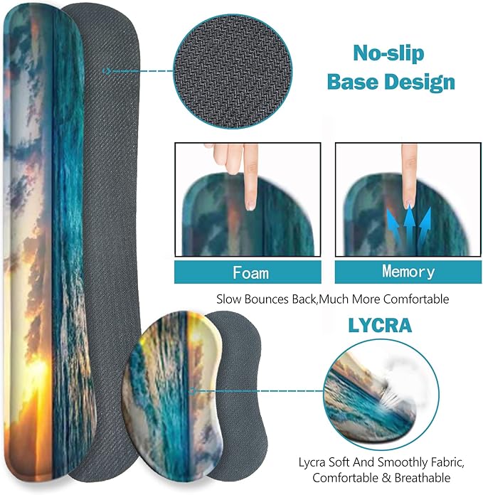 - 【Ergonomic Design】: Designed with memory foam and soft smooth material to the pads, lightweight comfortable and durable for your daily work life. This gaming mouse pad wrist support set is contoured ergonomically to keep arms, wrists, and hands from getting sore while working and gaming for long time, maximum reduce wrist stress and tiredness.