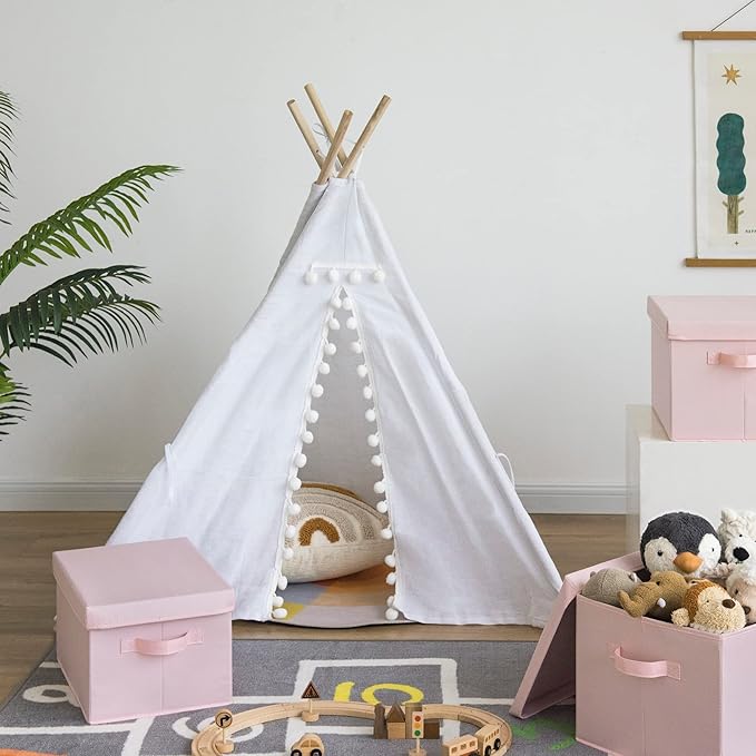 GRANNY SAYS Pink Storage Bins with Lids, Barbie Storage Organizer, Doll Toy Boxes, Stackable Fabric Storage Baskets for Closet, Baby Room, Nursery, 3-Pack