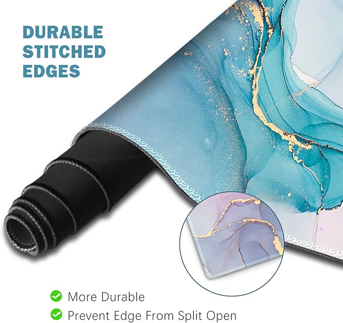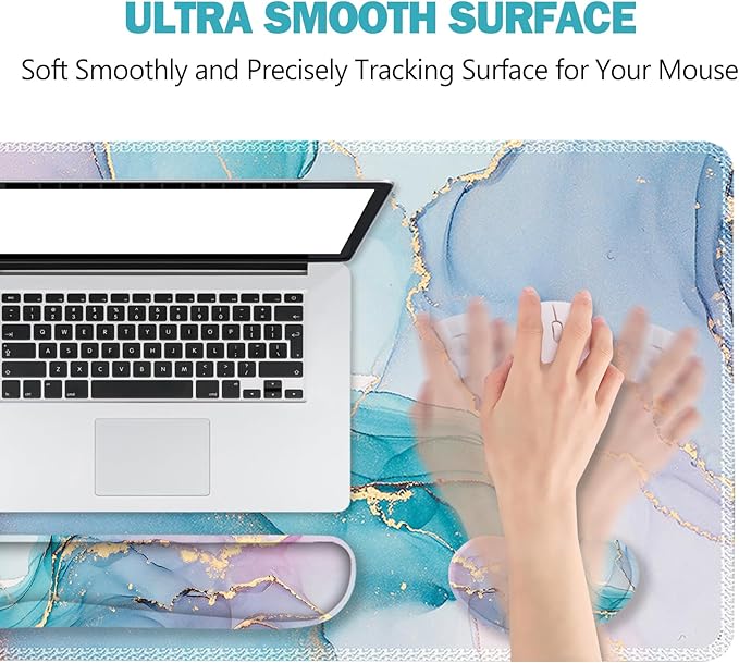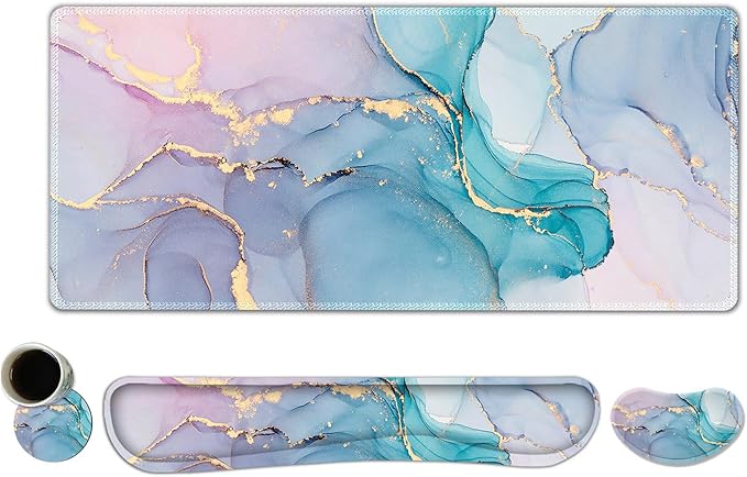 ToLuLu Extended Gaming Mouse Pad, Memory Foam Ergonomic Keyboard Mouse Wrist Rest Support Set, Large Desk Mat with Stitched Edges, Non-Slip Base Mousepad for Home Office Game, Blue Marble