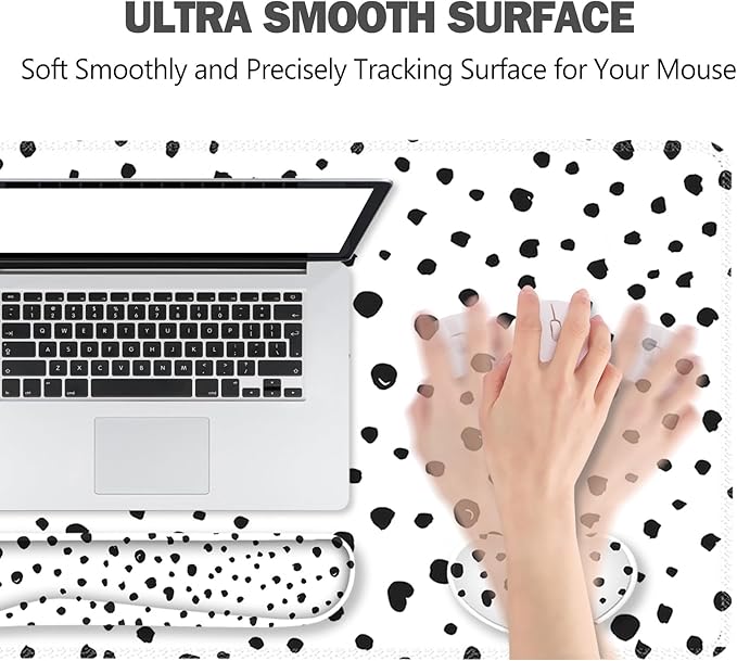 ToLuLu Extended Gaming Mouse Pad, Memory Foam Ergonomic Keyboard Mouse Wrist Rest Support Set, Large Desk Mat with Stitched Edges, Non-Slip Base Mousepad for Home Office Game and Study, Polka Dots