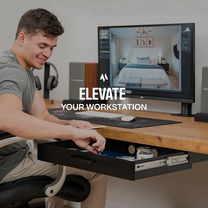 - PREMIUM MATERIAL & DESIGN - Elevate your workspace with our undermount desk drawer, made of premium carbon steel and a matte black finish. It's not just storage; it's a statement of quality in your curated workspace.
