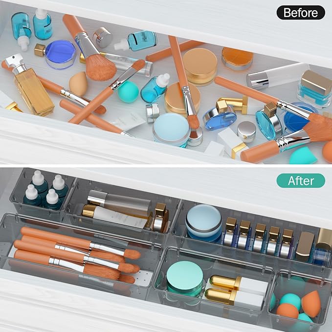 WOWBOX 12 Pack Clear Drawer Organizer Set, Acrylic Drawer Storage Trays, Storage Bins for Makeup, Cosmetics, Jewelries, Utensils, Gadgets, Office, Black