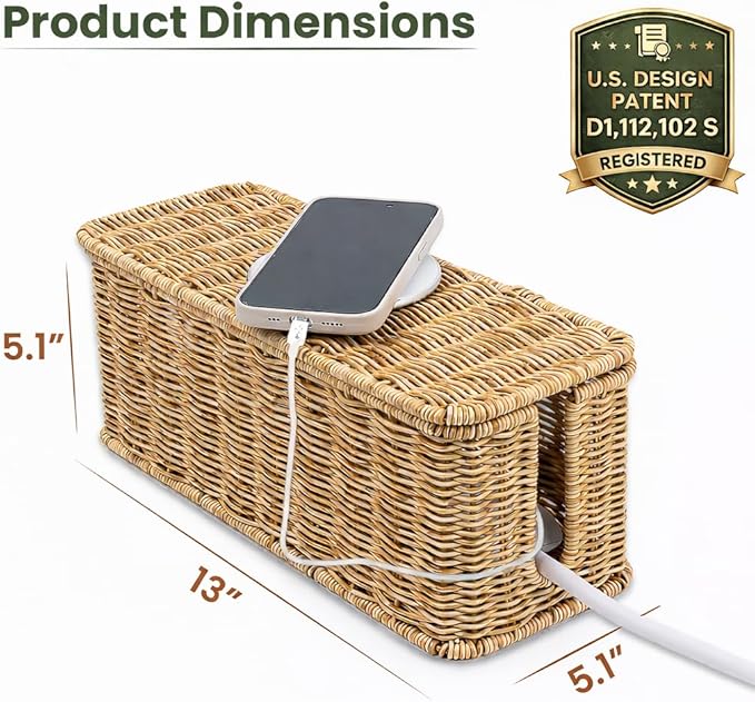 - Original Design, U.S. Design Patent Registered: Protected by U.S. Design Patent No. D1,112,102 S, this original Cantalop cable management box preserves its unique rattan structure, proportions, and overall visual design.