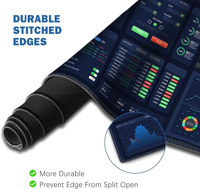 ToLuLu Extended Gaming Mouse Pad, Memory Foam Ergonomic Keyboard Mouse Wrist Rest Support Set, Large Desk Mat with Stitched Edges, Non-Slip Base Mousepad for Home Office and Game, Stock Market
