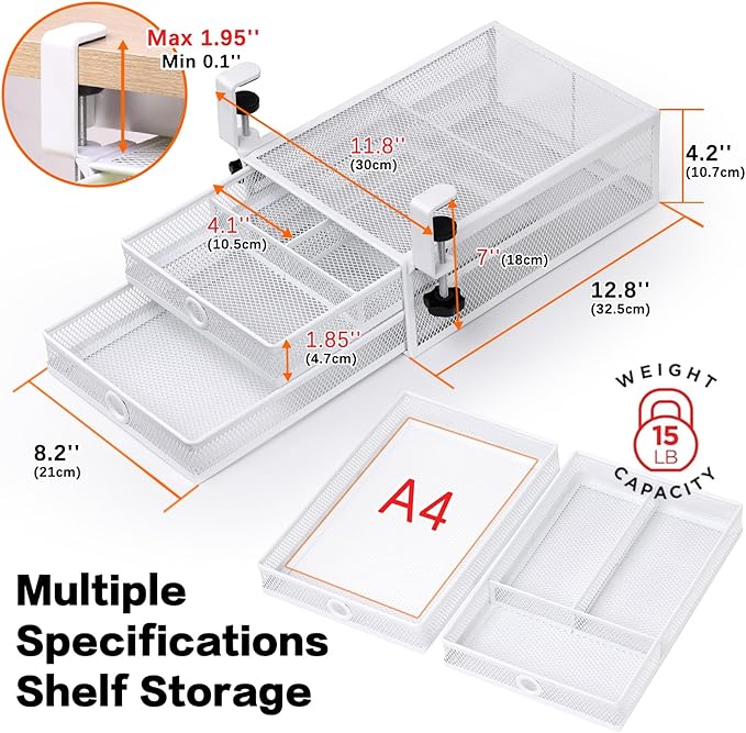 - Durable Under Desk Construction: Engineered with metal components and an optimized design, our drawer organizer guarantees enduring performance and deformation resistance. Enjoy smooth sliding drawers protected by specialized dust-proof mesh, built to last for your home office.