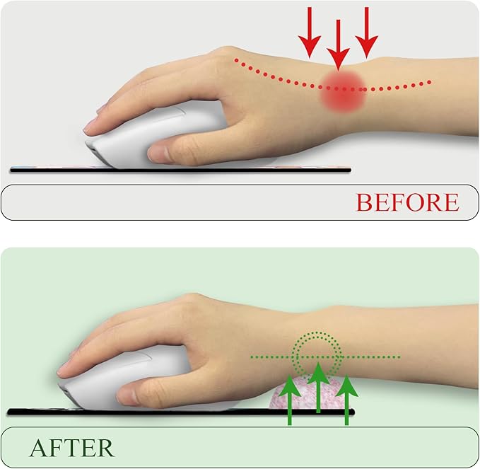 - Great Size and Thickness: With a size of 9.9" X 8.7", this gaming mouse pad fits all types of mice and computers. The 7mm thickness of the desk mouse pad provides optimal support for your wrist, reducing strain and discomfort. The 20mm wrist support adds extra cushioning for improved ergonomics