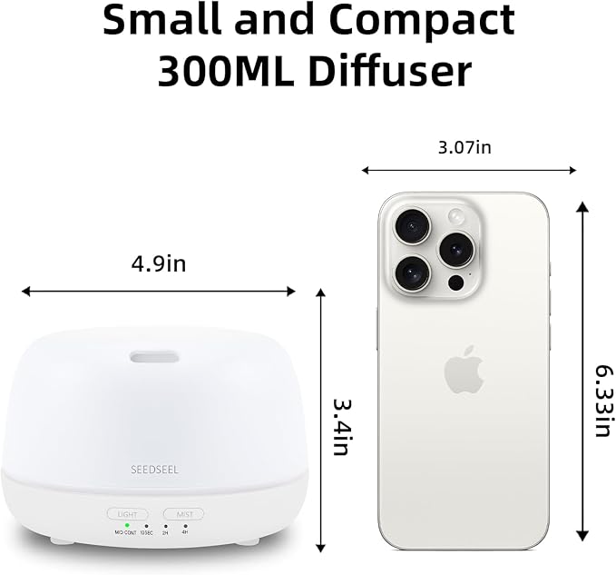 - Large 300ML Water Tank:Equipped with a 300ML water tank, providing up to 8 hours of continuous aromatherapy. This reduces the need for frequent refills and is ideal for overnight use.