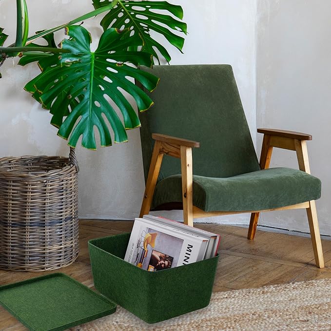 Welaxy felt tray Lid for Storage Bins Drawer Organizer bin cap of box for junk stuff stationery makeup jewelry closet bathroom minimalist lifestyle (Forest Green Lid, M)