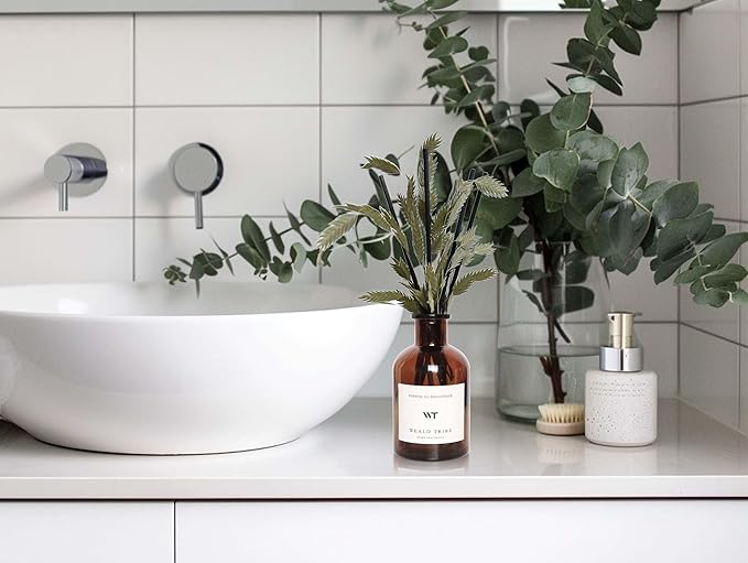 WEALD TRIBE Bamboo Scent Flower Reed Diffuser Set for Bathroom Air Fresheners, Oil Diffuser Sticks | 4.0 fl oz Home Fragrance with Sticks Defusers | House Bedroom Office Shelf Decor