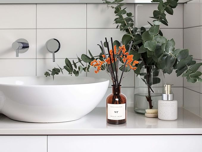 WEALD TRIBE Flower Reed Diffuser Set Neroli Scent for Bathroom Accessories Shelf Decor & Air Fresheners, Sticks Defusers with 4.0 fl oz Essential Oils & Leaves, House Bedroom Office Decor & Gifts