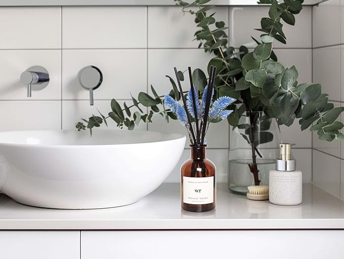 WEALD TRIBE Reed Diffuser Set for Bathroom Air Fresheners, Oil Diffuser Sticks | Sage & Sea Salt Scent 4.0 fl oz Home Fragrance with Sticks Defusers | House Bedroom Office Shelf Decor