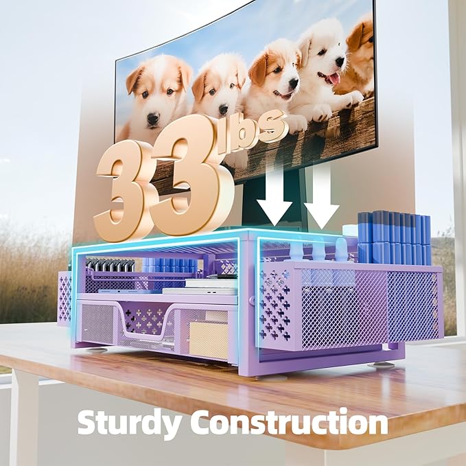 - Increases air flow to prevent overheating: The monitor stand is a mesh platform made of metal that improves air flow to your device, These holes also help prevent the dreaded overheating and keep your computer cool and in optimal working condition