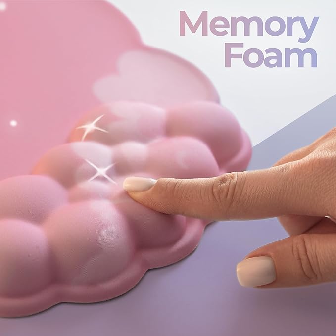 - Signature Cloud Design & Style: Elevate your workspace with our charming cloud-shaped design. This unique gaming wrist rest and matching cloud mouse pad with wrist rest set is available in stylish colors, adding personality and comfort perfect for students, gamers, and modern office setups.