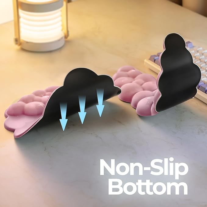 - Optimized for Gamers & Office Professionals: Our durable cloud keyboard wrist rest and desk pad set provide firm, consistent support during long hours at your desk. Effectively reduce hand fatigue and promote a healthier, ergonomic posture, enhancing productivity and comfort.