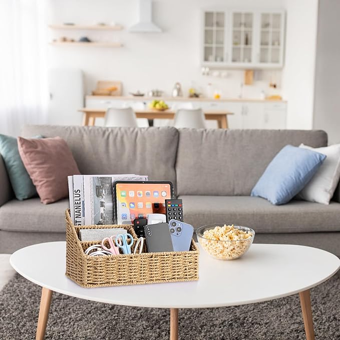 - Functional Divided Basket: The 4 different storage compartments make countertops clean and tidy. It's ideal for organizing mail, pens, markers in the office; spice, snack, pantry in the kitchen, or vanity essentials in the bathroom, bedroom. 4 divided sections makes your belongings not only stored, organized but also classified, provide you clean home space and convenient home life.