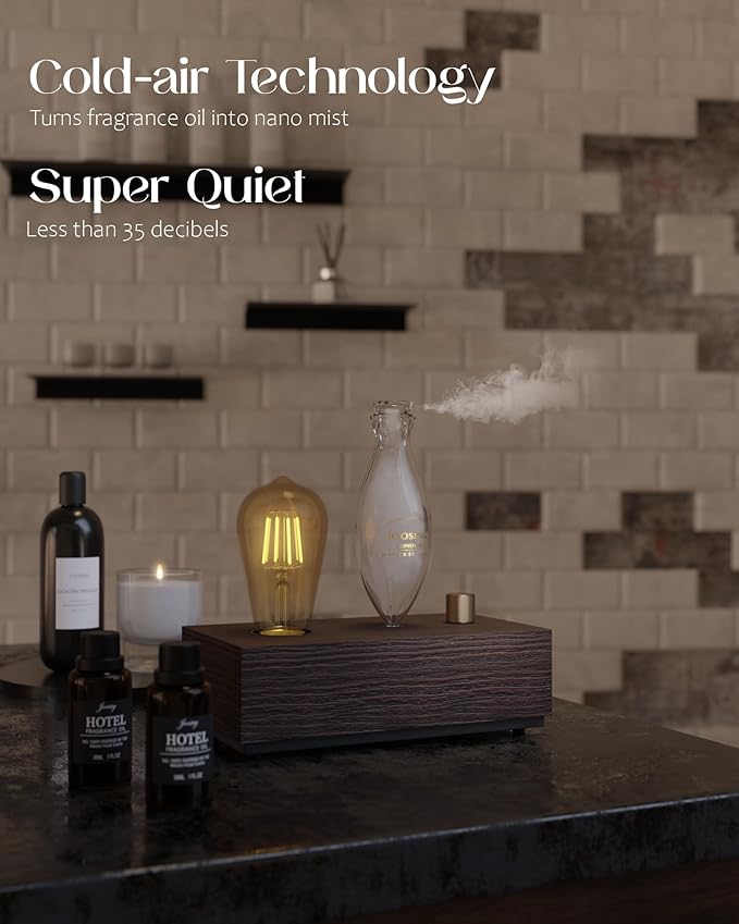 Waterless Essential Oil Diffusers with Rechargeable Battery & 9H Runtime, Aromatherapy Diffusers with Bulb, Scent Diffusers Premium Wood & Glass Nebulizer Cordless for Large Home, Hotels, Rooms