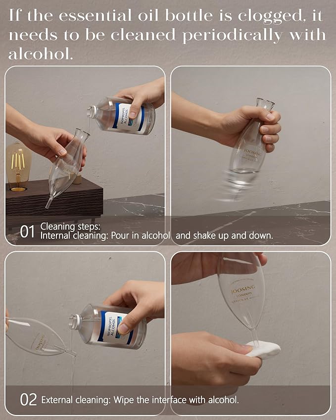 - 🌟Note: To maintain optimal functionality, the essential oil bottle should be cleaned periodically with isopropyl alcohol if clogging occurs.