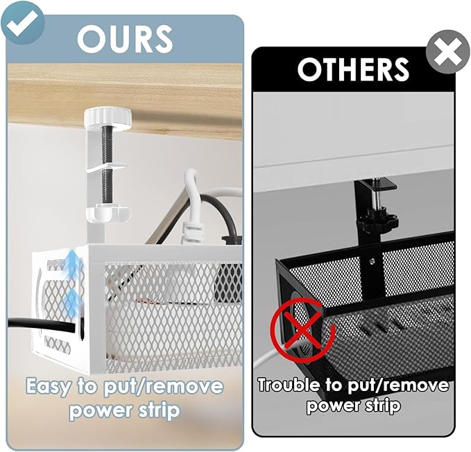 - 【No More Mess】Keep the cables and sockets tidily stored to maintain a clean and organized desk and floor. The workspace organizers keeps all cables and sockets away from your kids, no more worry about tripping.