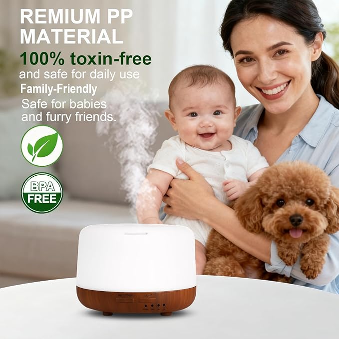 - Quiet Operation & Auto Shut-Off: The air diffuser's ultra-quiet design ensures undisturbed sleep. Automatic power-off at low water levels safety.