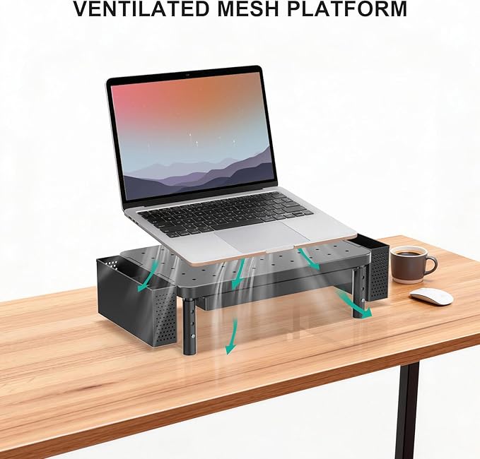 - Storage Space: This laptop riser with storage with a removable drawer keeps smaller items out of sight for a more productive and tidy working environment. Pull out the drawer to have extra space underneath for office supplies such as compact keyboard, book, documents, etc