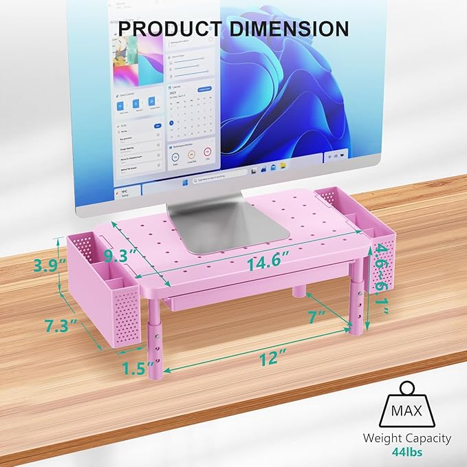 - Save Space: This monitor stand includes a built-in drawer and two hanging pen holders, offering ample storage space for office supplies and accessories, helping to keep your workspace tidy and productive