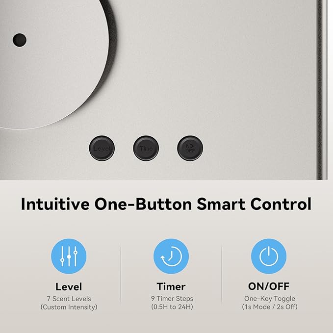 - Personalized All-Day Fragrance – 7 Levels & 9 Smart Timers: The Aromadd U2 Essential Oil Diffuser is designed for ultimate convenience and personalized fragrance control. With 7 adjustable scent intensity levels, you can seamlessly tailor the atmosphere—from a subtle refreshing touch to a rich aroma that fills the entire room. Choose from 9 preset timer options to create the perfect ambiance for sleep, work, or all-day enjoyment. A smart low-oil alert ensures uninterrupted diffusion, while simple one-touch operation lets you switch mist intensity or power off in seconds. Enjoy a smarter, more effortless aromatherapy experience anytime